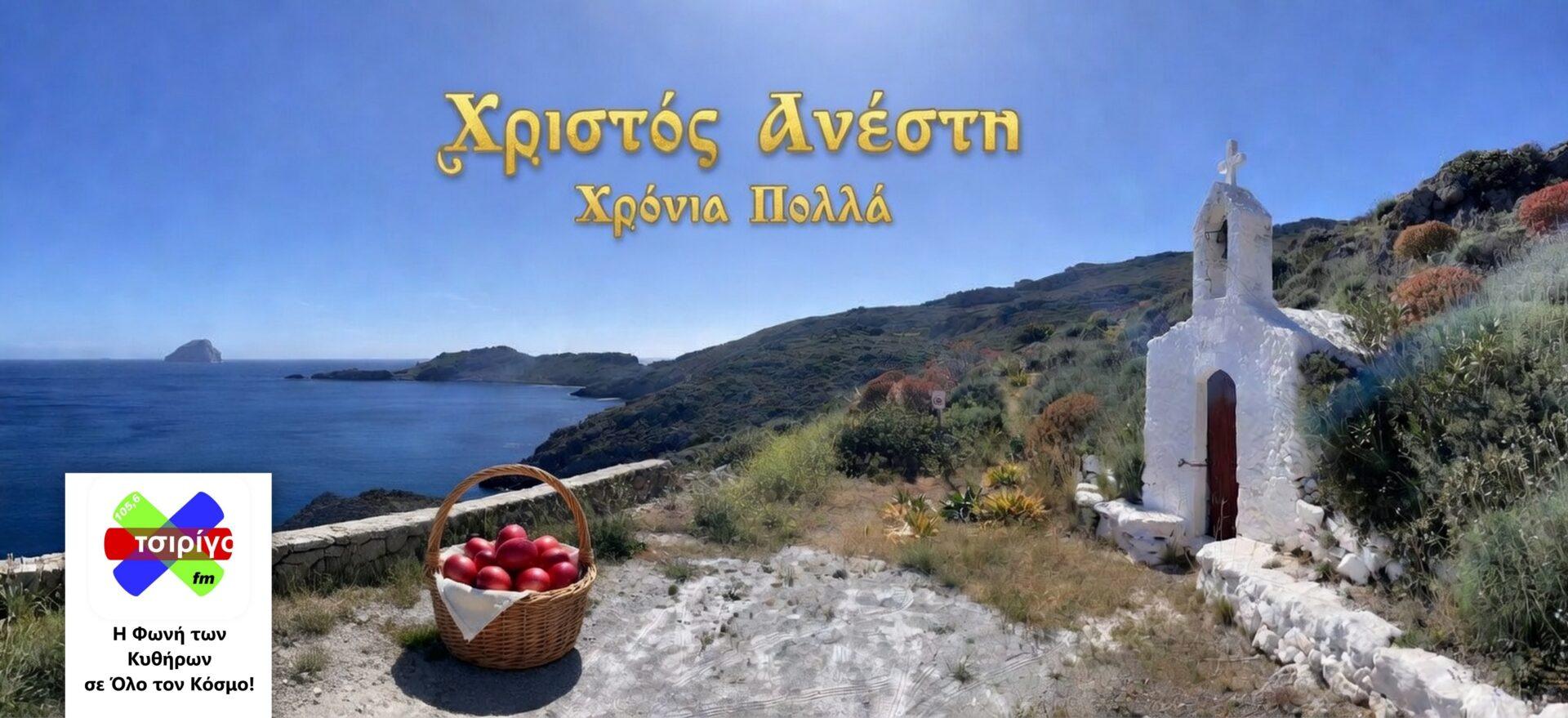 ΚύθηραΧριστός Ανέστη και Χρόνια Πολλά από τον TSIRIGO FMTsirigo FM12.04.2026 12 Απριλίου 20260216 Ο TSIRIGO FM – Η Φωνή των Κυθήρων σε Όλο τον Κόσμο, εύχεται σε όλους...