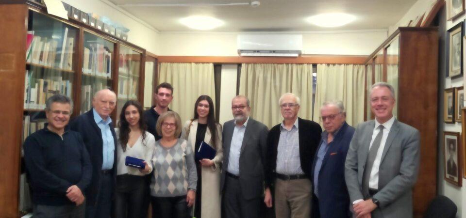 Τις συγκεκριμένες απονομές έκαναν: Ο Επίτιμος Πρόεδρος του Ιδρύματος Εμμ. Γ. Καλοκαιρινός, ο Αντιπρόεδρος Εμμ. Π. Καλλίγερος και το μέλος του Δ.Σ. Βάσω Σαμίου-Φλωροπούλου.