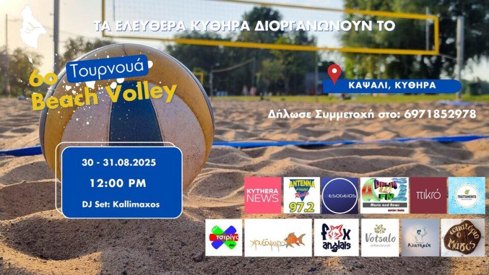ΑθλητισμόςΚύθηρα6ο Τουρνουά Beach Volley από τα “Ελεύθερα Κύθηρα” στο Καψάλι 30 & 31 Αυγούστου Από Tsirigo FM30 Αυγούστου 202530.08.20250327Τα “Ελεύθερα Κύθηρα” διοργανώνουν κι εφέτος μετά την Αγία Πελαγία και στο Καψάλι, τουρνουά beach volley, το Σάββατο 30 και την Κυριακή 31 Αυγούστου!Στα decks της διοργάνωσης ο Dj Kallimaxos. Χορηγός Επικοινωνίας: TSIRIGO FM 105,6
