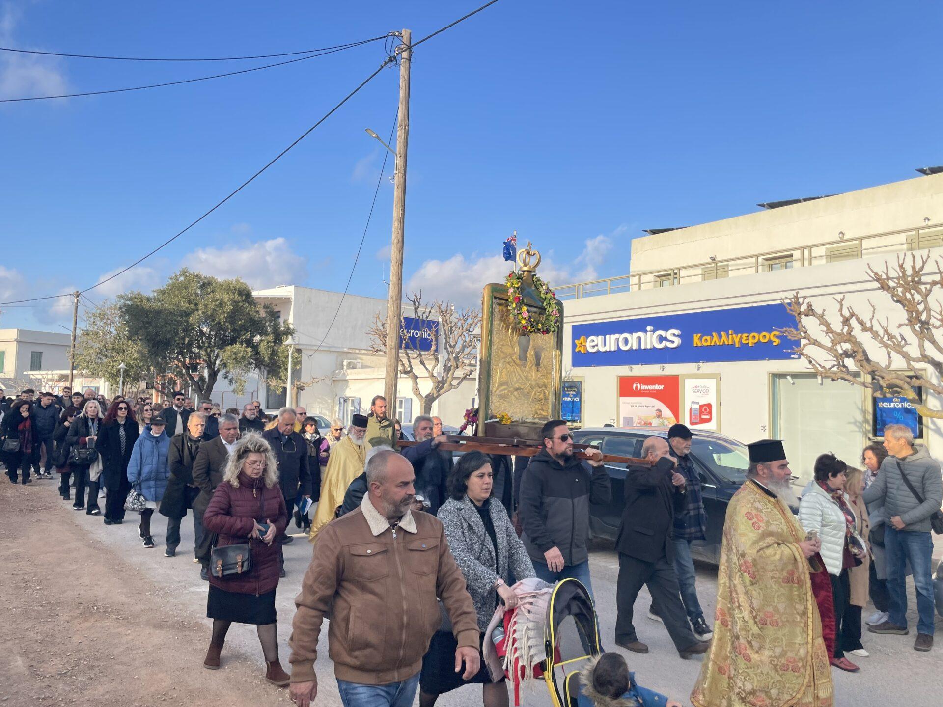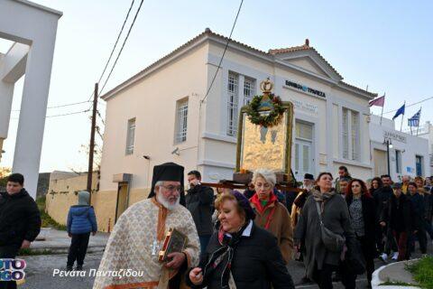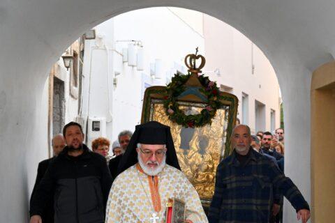 Ακολουθεί πλούσιο φωτορεπορτάζ από την περιφορά της Εικόνας της Παναγίας μας και βίντεο με την άφιξή Της στη Χωρα: