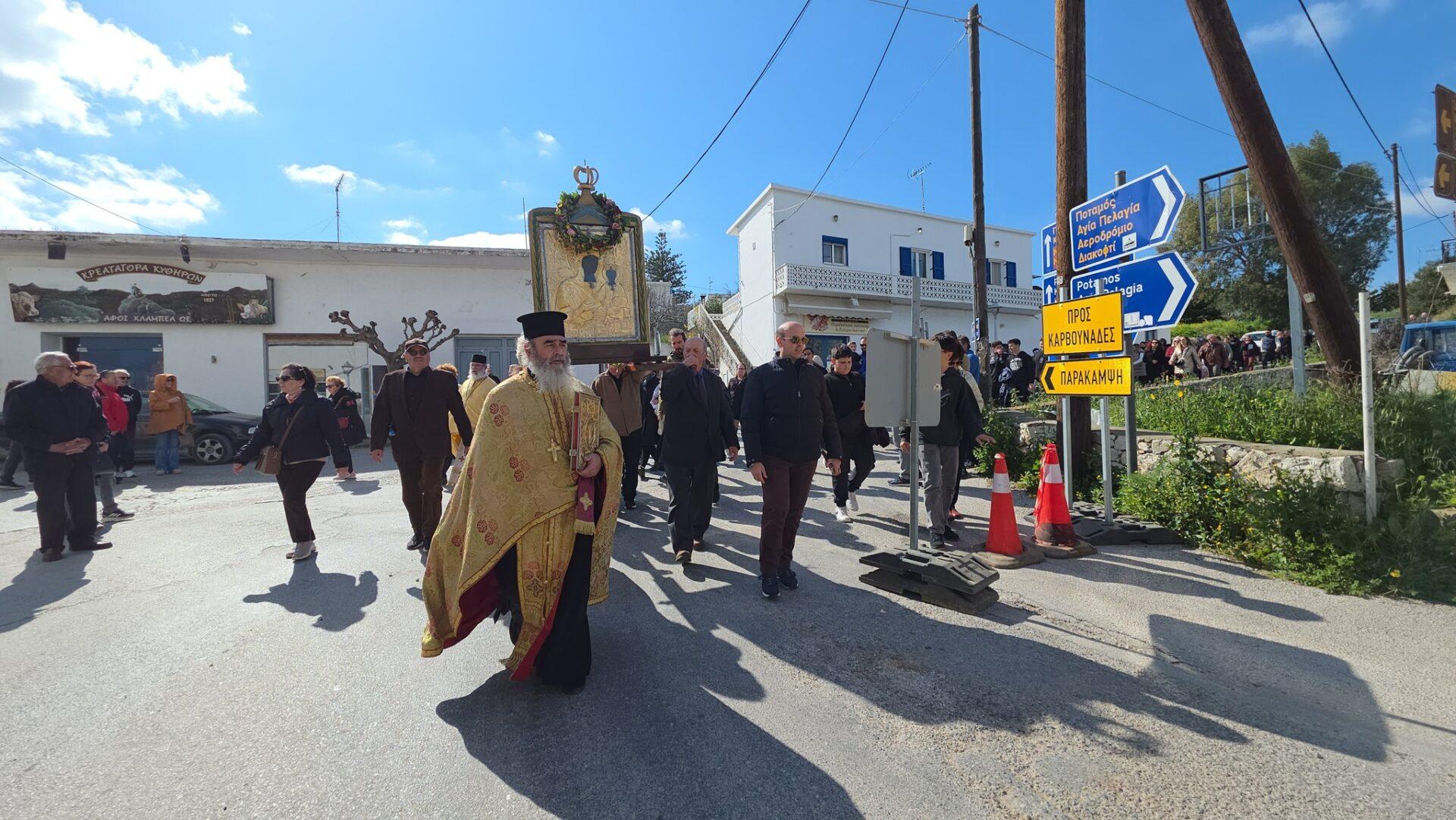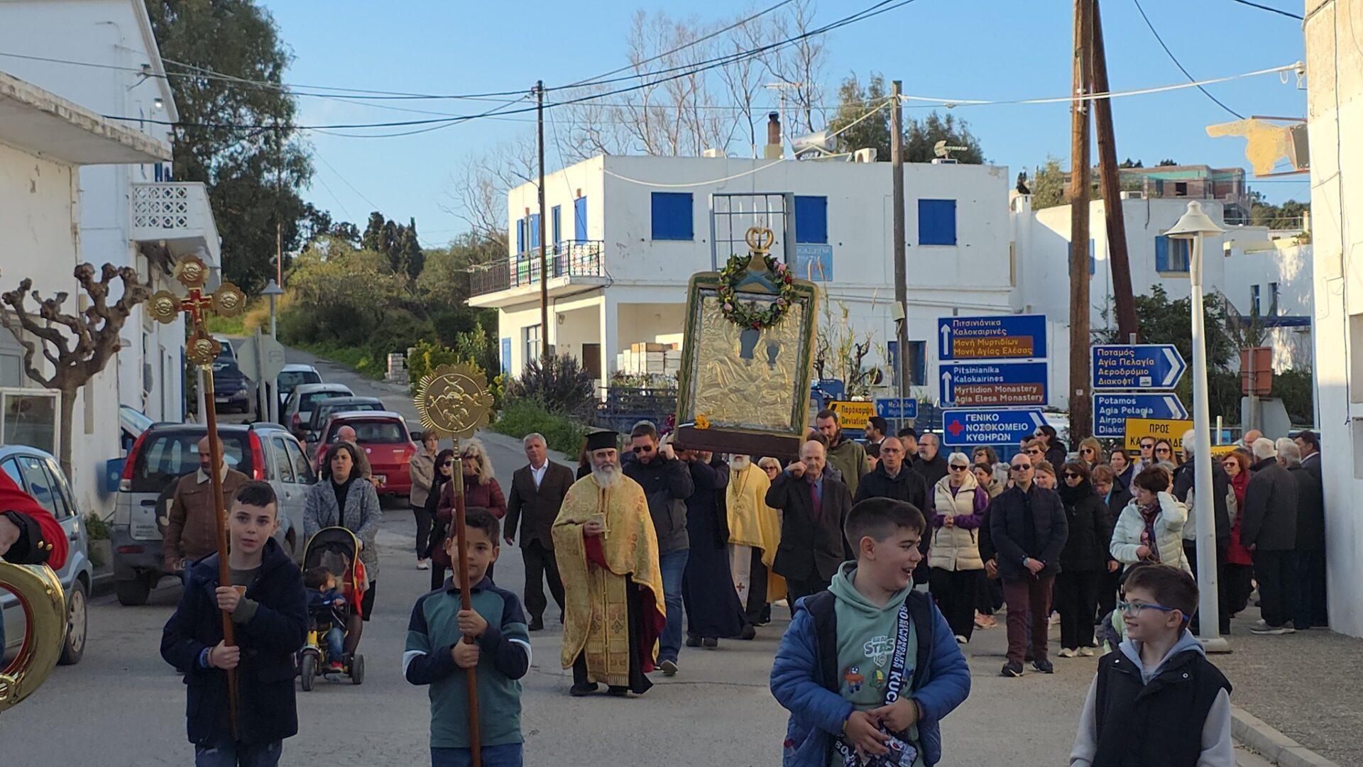 Με κατάνυξη και τη συμμετοχή πλήθους πιστών πραγματοποιήθηκε η μεταφορά της Ιερής Εικόνας της Παναγίας Μυρτιδιώτισσας από τα Μυρτίδια στη Χώρα, όπως ορίζει το έθιμο, την Κυριακή της Ορθοδοξίας, η οποία φέτος συνέπεσε με την 1η Μαρτίου 2026, πρώτη ημέρα της Άνοιξης!