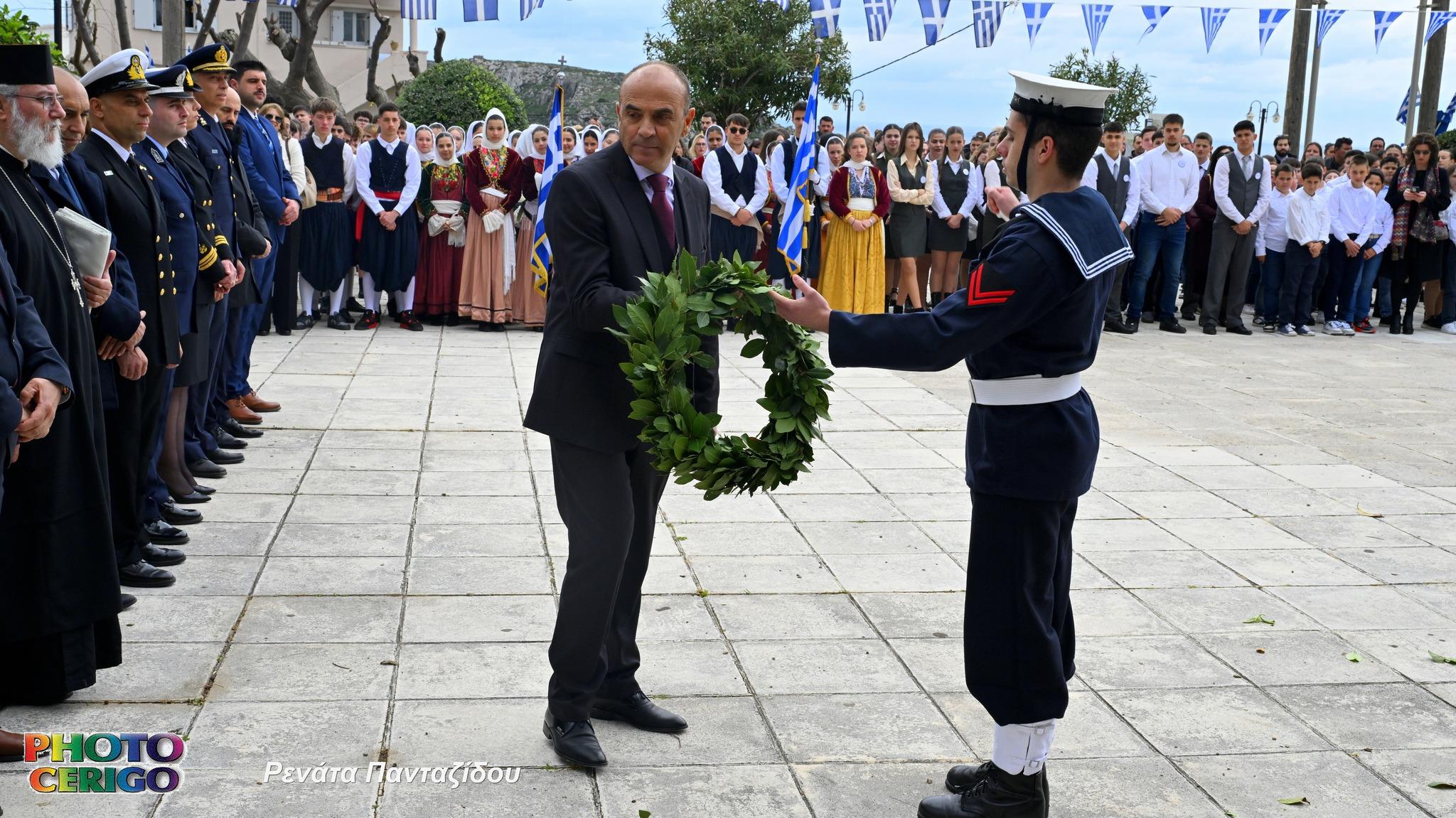 25η Μαρτίου Κύθηρα – Κατάθεση Στεφάνου από τον Π. Μεγαλοκονόμo