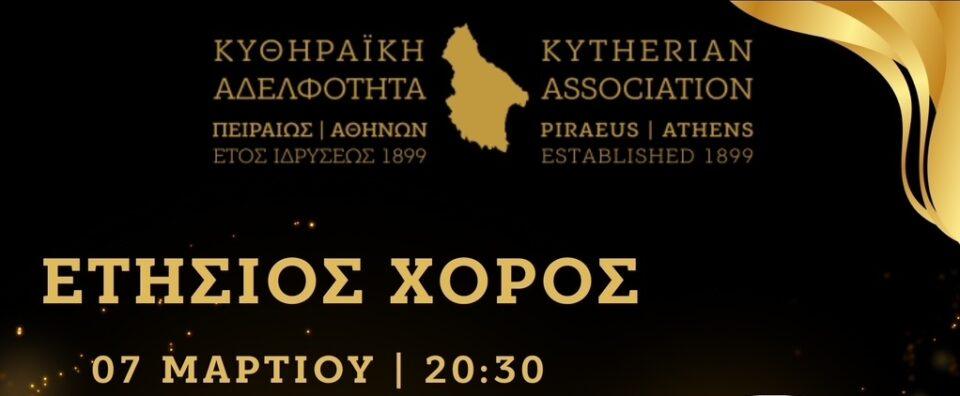 Η Κυθηραϊκή Αδελφότητα Πειραιώς – Αθηνών διοργανώνει τον ετήσιο χορό της, προσκαλώντας μέλη και φίλους σε μια ξεχωριστή βραδιά συνάντησης, μουσικής και διασκέδασης.