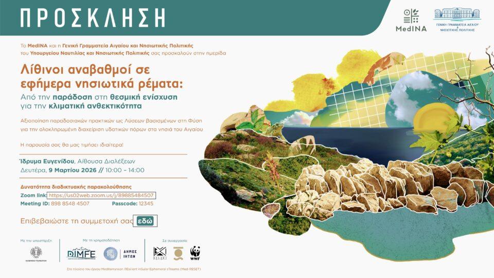 “Λίθινοι αναβαθµοί σε εφήµερα νησιωτικά ρέµατα: Από την παράδοση στη θεσμική ενίσχυση για την κλιματική ανθεκτικότητα”.