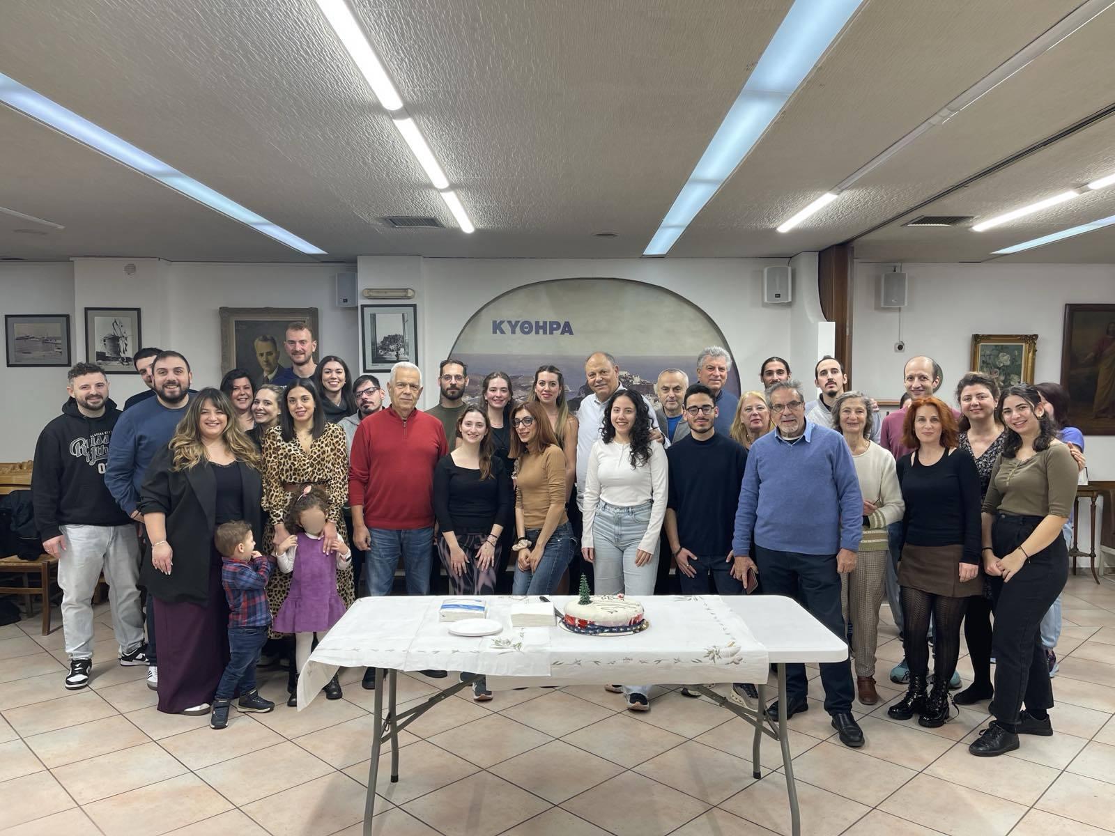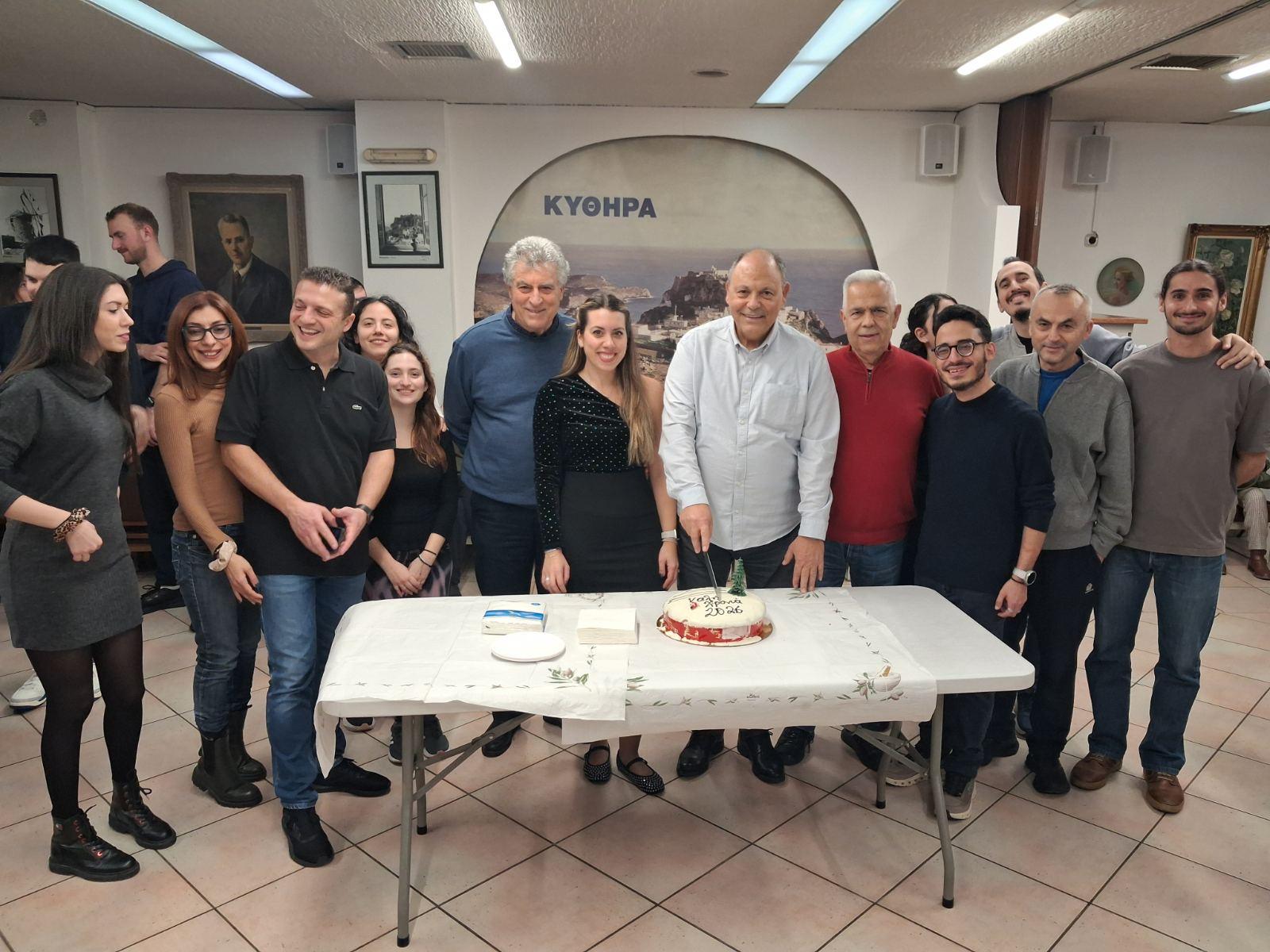 Μέλη του ΔΣ, χορευτές και φίλοι του Κυθηραϊκού Συνδέσμου αντάλλαξαν ευχές για τη νέα χρονιά, σε μια όμορφη συνάντηση γεμάτη χορό, χαμόγελα, μουσική και αγάπη για την παράδοση του τόπου μας.