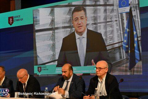 Μαγνητοσκοπημένο μήνυμα έστειλαν ο Επίτροπος Βιώσιμων Μεταφορών και Τουρισμού της ΕΕ κ. Απόστολος Τζιτζικώστας, ο Ευρωβουλευτής κ. Ευάγγελος Μεϊμαράκης και ο Γ.Γ. της ΚΕΔΕ κ. Δημήτρης Καφαντάρης.