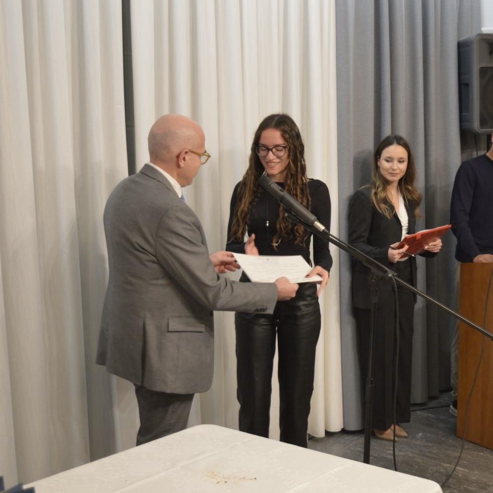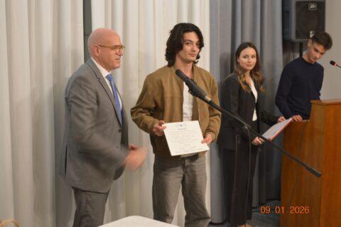 Όλοι απηύθυναν σύντομους χαιρετισμούς, αντάλλαξαν ευχές για τη νέα χρονιά, ευχήθηκαν στους φοιτητές καλή πρόοδο και μια επιτυχημένη ακαδημαϊκή πορεία, ενώ συμμετείχαν και στην απονομή των αντίστοιχων επαίνων.