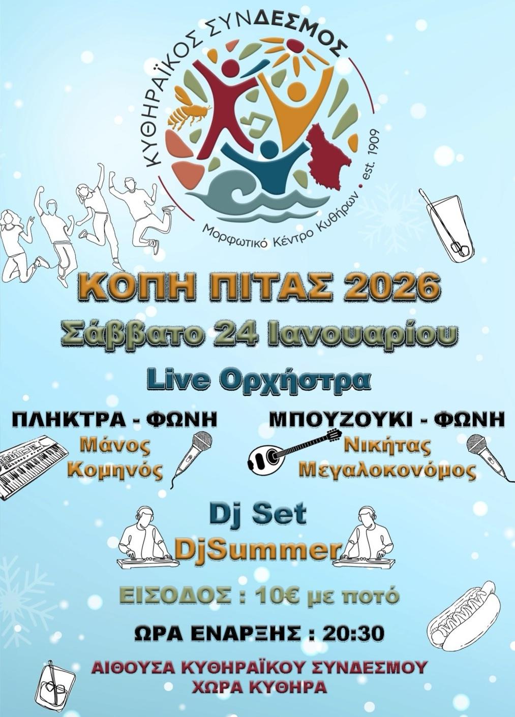 ΚύθηραΚυθηραϊκός Σύνδεσμος Κυθήρων – Χορός και κοπή πίτας το Σάββατο 24 Ιανουαρίου 2026 Από Tsirigo FM21 Ιανουαρίου 202621.01.20260770 Πηγή: Κυθηραϊκός Σύνδεσμος Κυθήρων