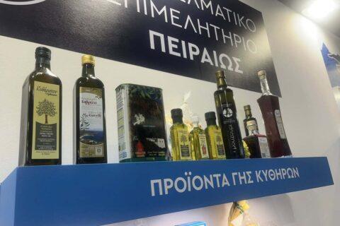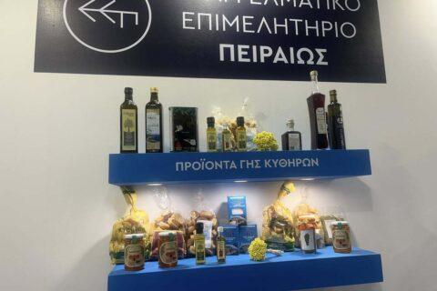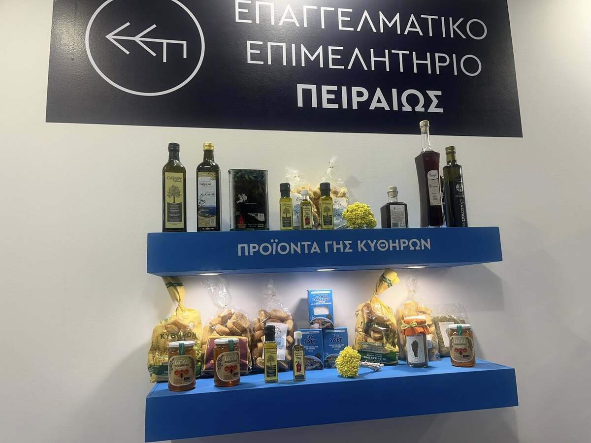 Μαζί μου, με την φροντίδα του Επαγγελματικού Επιμελητηρίου Πειραιά, τα εκλεκτά προϊόντα των Κυθήρων , λάδι, μέλι, παξιμάδια, αλάτι, φατουράδα, ρίγανη, κόσμησαν το περίπτερο του Επιμελητηρίου.