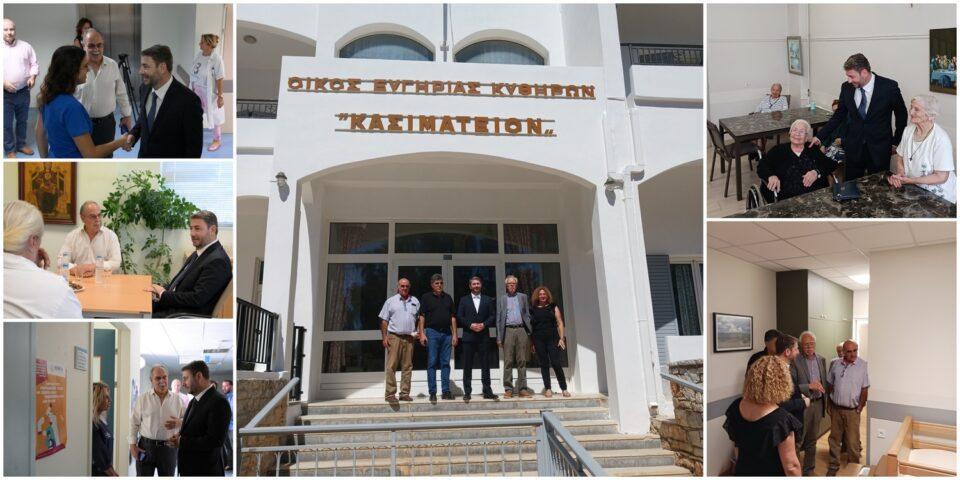 «Σήμερα Παρασκευή 19/9/2025, μας επισκέφτηκε κατά την περιοδεία του στο νησί μας, ο κ. Νίκος Ανδρουλάκης, Πρόεδρος του ΠΑΣΟΚ και επικεφαλής της Αξιωματικής Αντιπολίτευσης. Επισκέφτηκε τους Τρόφιμους του Γηροκομείου μας, έγινε ξενάγηση στην πτέρυγα των ανακαινισμένων δωματίων, συνομίλησε με το προσωπικό του Γηροκομείου και στην συνέχεια σε συνάντηση με τα μέλη του Διοικητικού Συμβουλίου και της Τοπικής Εφορίας συζητήθηκαν τα προβλήματα και η ανάγκη στήριξης του κράτους για την διευκόλυνση λειτουργίας του Γηροκομείου και της καθημερινότητας των Τρόφιμων».