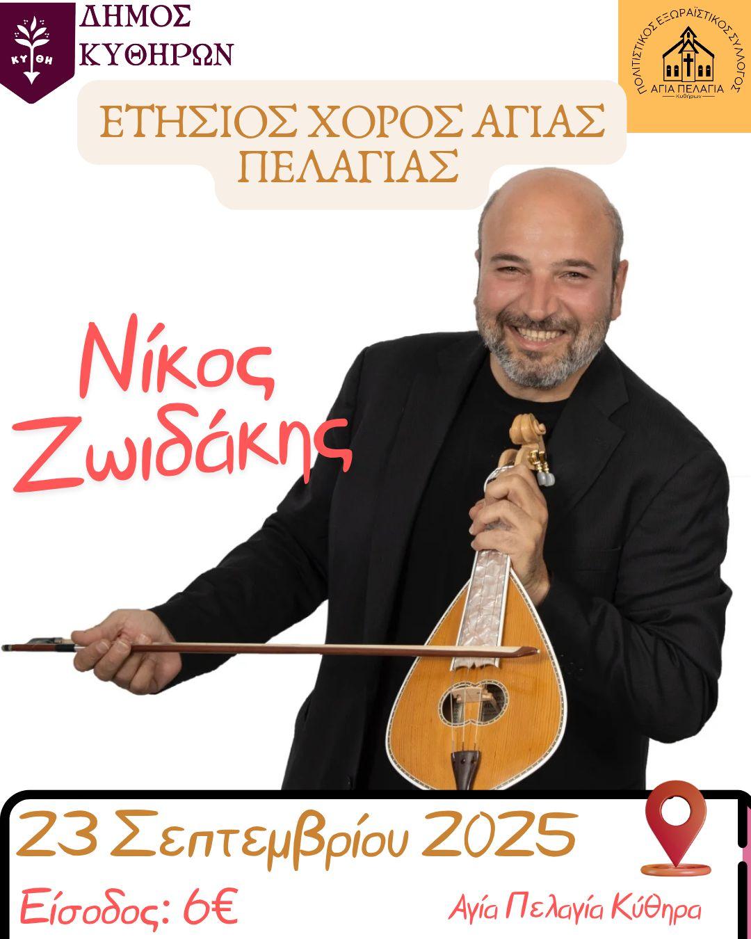 ΚύθηραΟ Νίκος Ζωιδάκης στο χορό της Αγίας Πελαγίας Κυθήρων – Τρίτη 23 Σεπτεμβρίου Από Tsirigo FM23 Σεπτεμβρίου 20250684 Πηγή: TSIRIGO FM 105,6