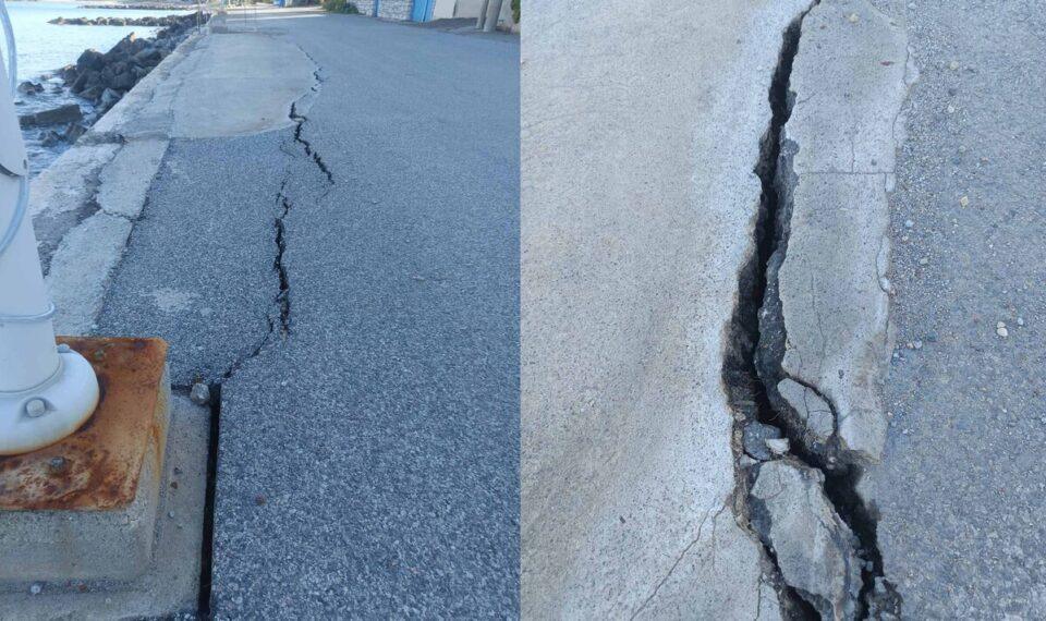 Η πρόσφατη παρέμβαση με σκυρόδεμα όχι μόνο δεν ανέστειλε την εξέλιξη του φαινομένου, αλλά φαίνεται ότι επιτάχυνε τη δημιουργία ενός συνεχούς σημείου αποκόλλησης, το οποίο εκτείνεται κατά μήκος του δρόμου και δημιουργεί πλέον πραγματικό κίνδυνο για την ασφάλεια διερχόμενων οχημάτων και πεζών. Πρόκειται για παραλιακό δρόμο με καθημερινή χρήση, ο οποίος βρίσκεται σε άμεση γειτνίαση με τη θάλασσα και δέχεται διαρκώς τη δυναμική επίδραση του κυματισμού, γεγονός που καθιστά προφανές ότι δεν μπορεί να αντιμετωπίζεται με αποσπασματικές και πρόχειρες τεχνικές λύσεις.