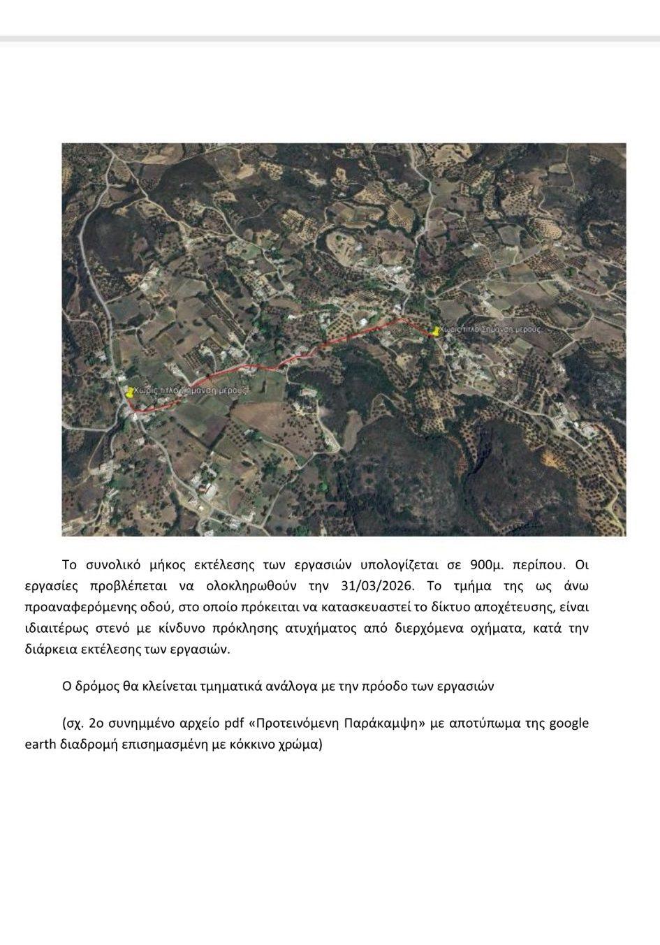 Επιπλέον, στο ανωτέρω έγγραφο γίνεται ρητή αναφορά από την ανάδοχο εταιρεία στον κίνδυνο πρόκλησης ατυχήματος κατά τη διάρκεια εκτέλεσης των εργασιών, γεγονός που καθιστά ακόμη πιο επιτακτική την αυστηρή τήρηση της νόμιμης διαδικασίας. Τυχόν διακοπή ή περιορισμός της κυκλοφορίας χωρίς την απαιτούμενη απόφαση και τις προβλεπόμενες εγκρίσεις ενδέχεται να δημιουργήσει σοβαρά ζητήματα ευθύνης για τον Δήμο, ιδίως σε περίπτωση ατυχήματος.