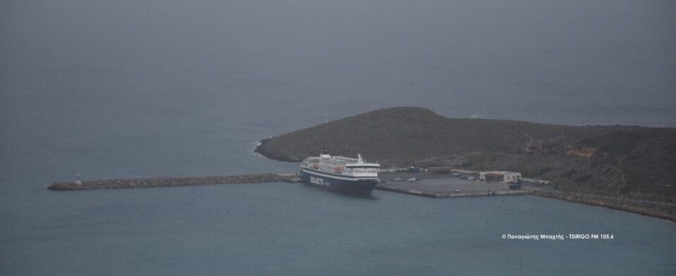 Ενημερώνουμε το επιβατικό κοινό ότι σήμερα, Πέμπτη 22/1, το Ε/Γ–Ο/Γ πλοίο μας «AQUA JEWEL» κατά την εκτέλεση του δρομολογίου του, λόγω δυσμενών καιρικών συνθηκών, δεν θα συνεχίσει το δρομολόγιο του από Κύθηρα προς Κίσσαμο και θα παραμείνει στο λιμάνι των Κυθήρων έως ότου βελτιωθούν τα καιρικά φαινόμενα.