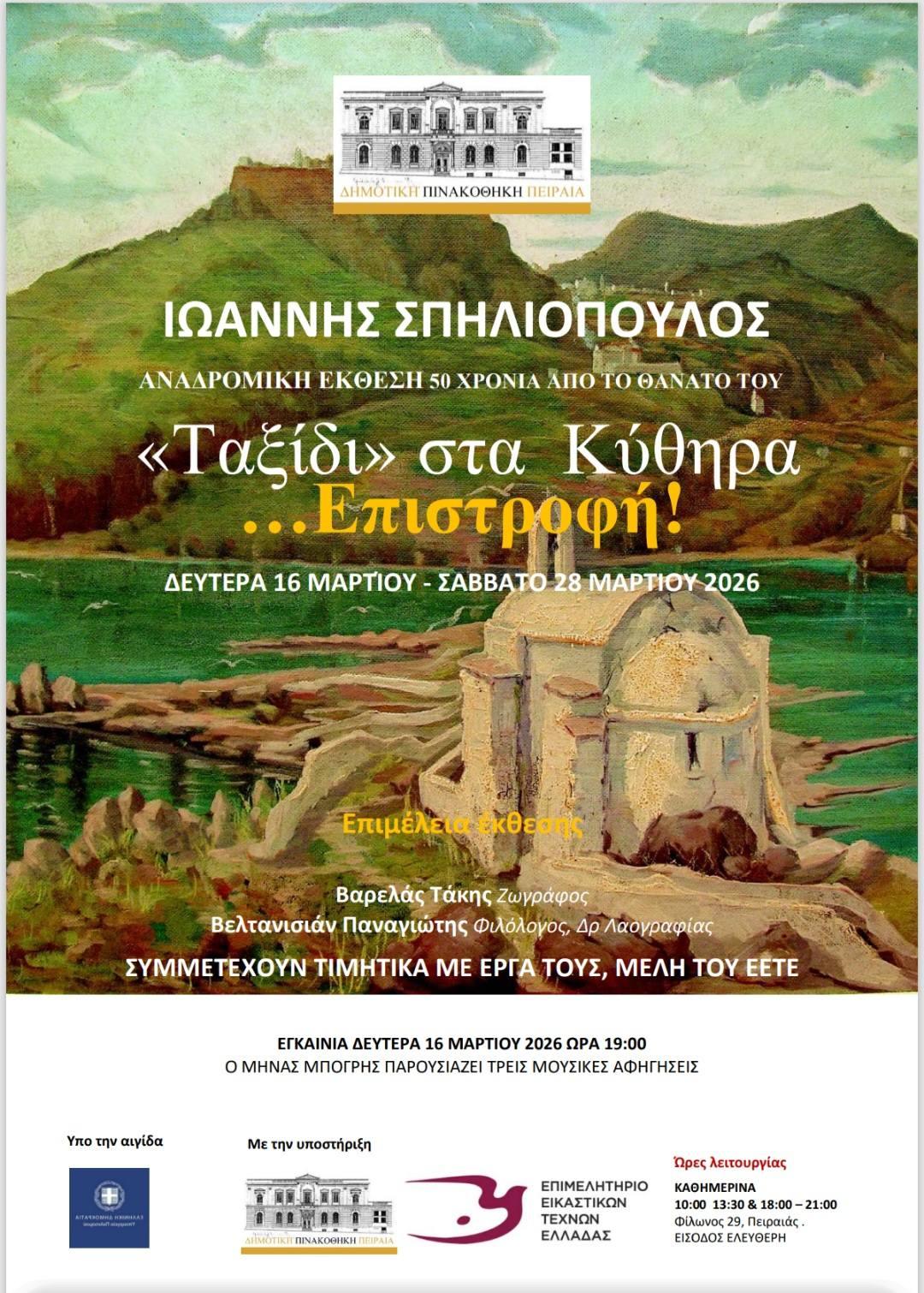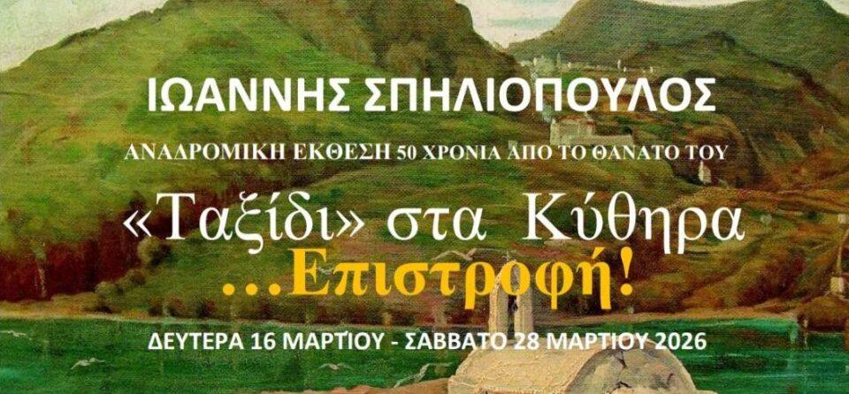 Πολιτισμός«Ταξίδι» στα Κύθηρα …Επιστροφή! – Έκθεση ζωγραφικής στη Δημοτική Πινακοθήκη Πειραιά με έργα του Ιωάννη Σπηλιόπουλου Από Tsirigo FM15 Μαρτίου 202615.03.20260566 Μίνα Σπηλιοπουλου Μπούτση