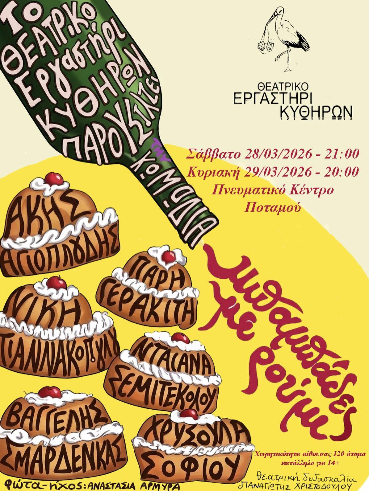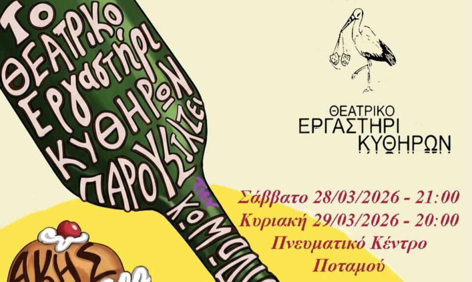 Το Θεατρικό Εργαστήρι Κυθήρων παρουσιάζει τη νέα του παράσταση «Μπαμπάδες με Ρούμι», προσκαλώντας το κοινό σε δύο θεατρικές βραδιές στο Πνευματικό Κέντρο Ποταμού.