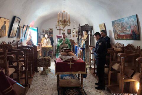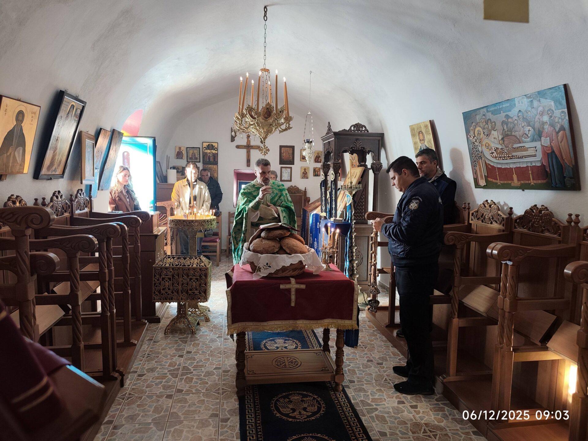 Η πανηγυρική Θεία Λειτουργία τελέσθηκε, με την ευλογία του επιχωρίου Μητροπολίτου κ. Σεραφείμ, από επισκέπτη Ιερέα εκ της Κύπρου, ο οποίος ευλόγησε τους προσφερθέντες άρτους και ανέπεμψε δεήσεις για τους ναυτικούς μας.